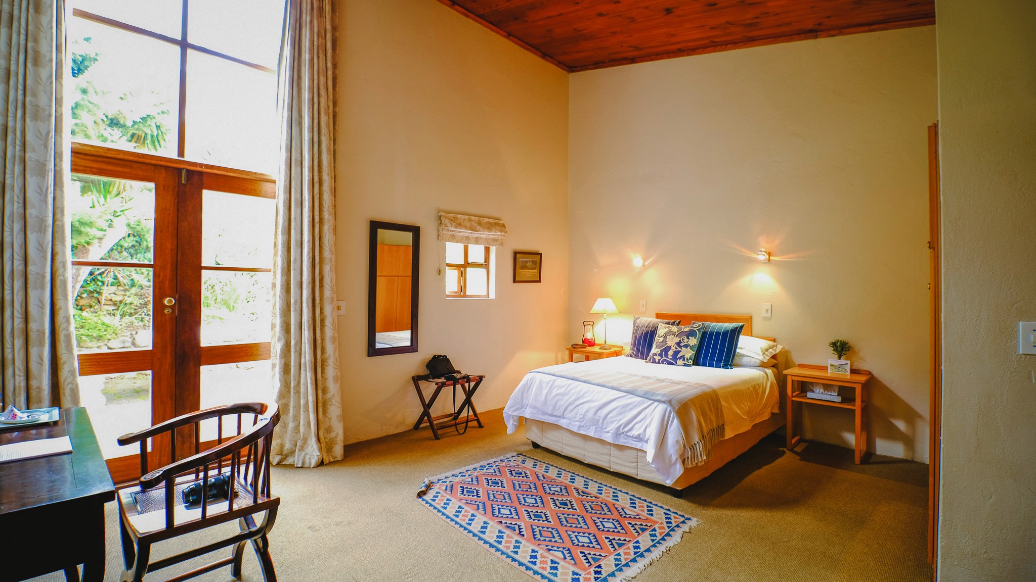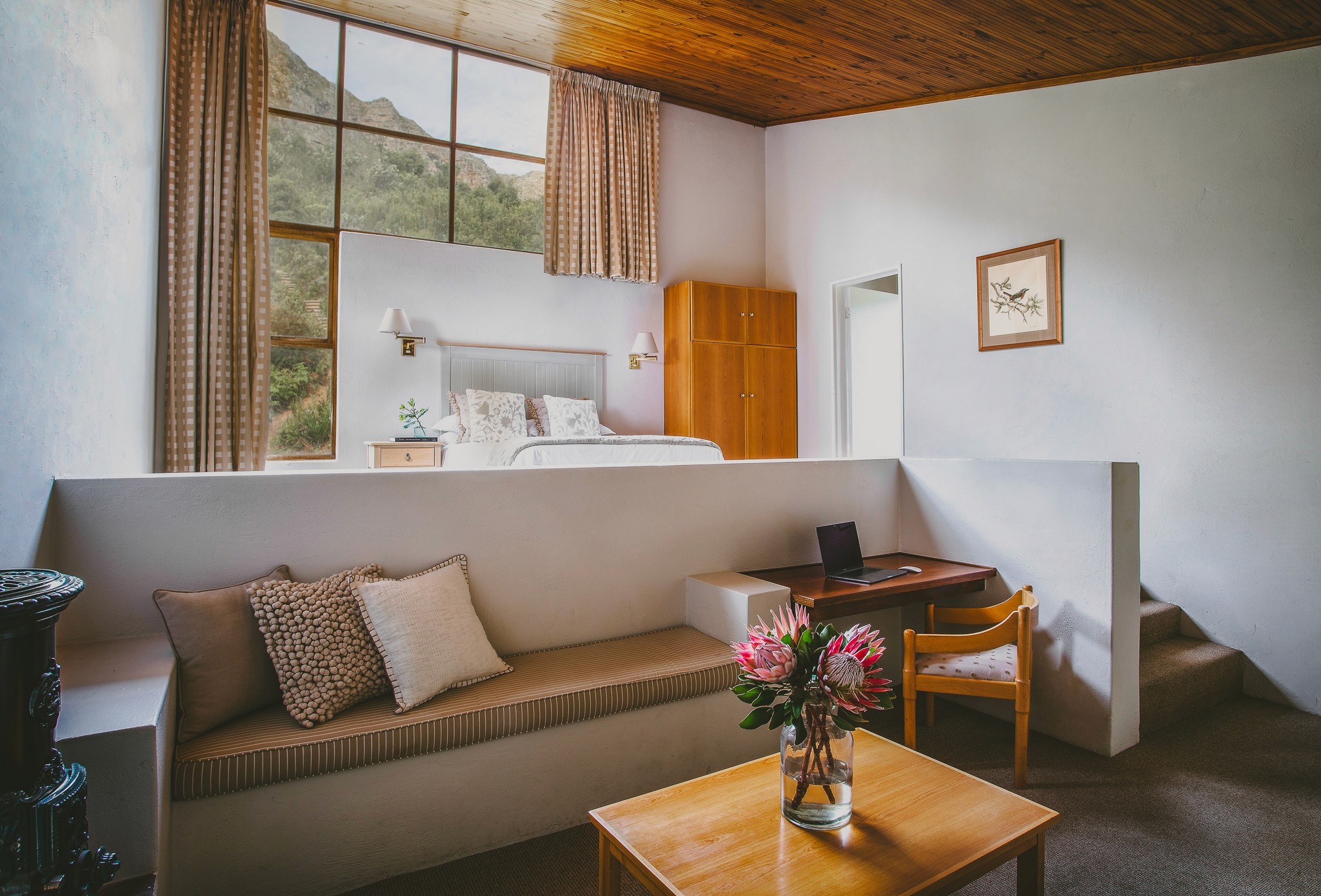 The bedrooms are simple, comfortable, and restful, each with en-suite bathrooms and views of the surrounding mountains. Designed to feel warm and homely, they provide a quiet space to relax and recharge between sessions.